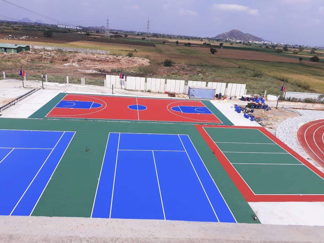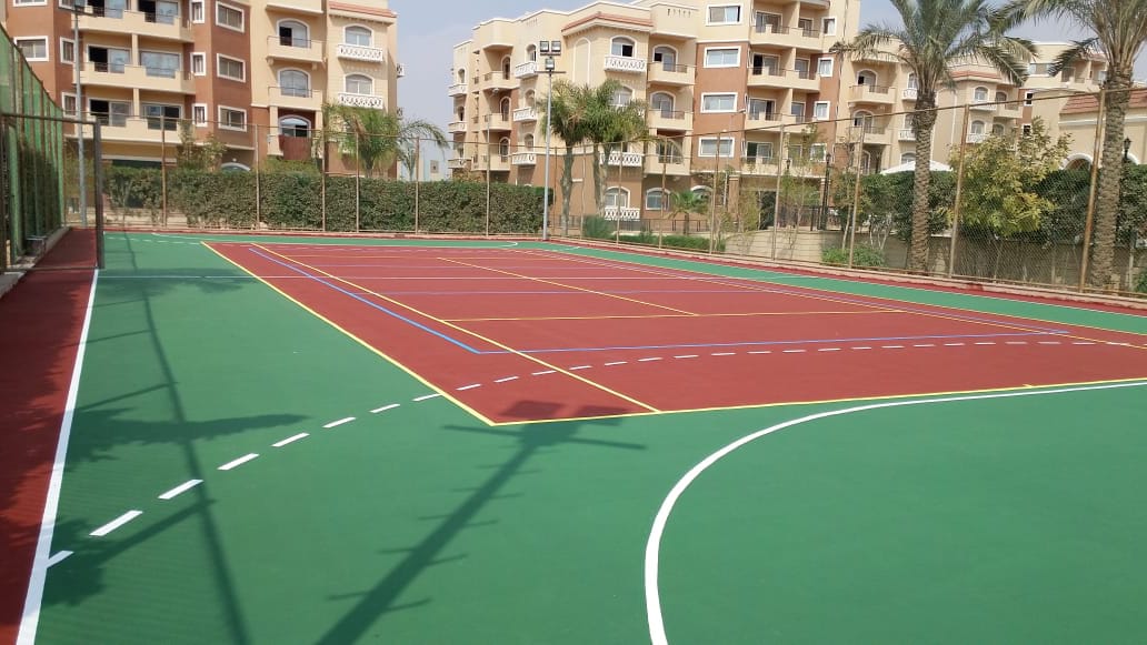 تنفيذ أرضيات الترتان أو السليكا بالفيبر لضمان مرونة امتصاص الصدمات وحماية اللاعبين.