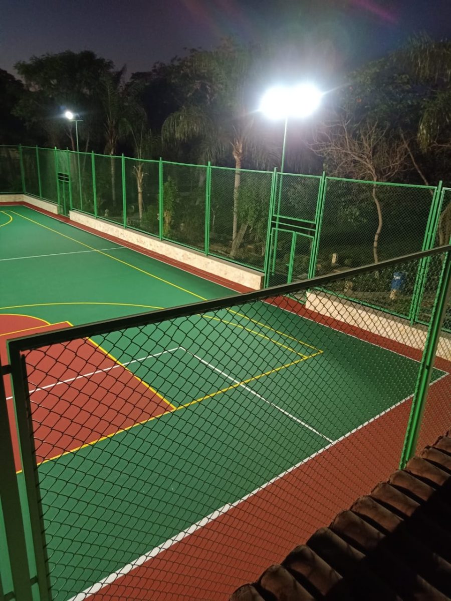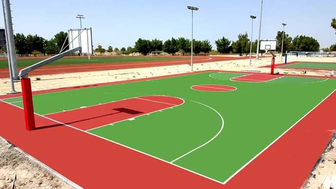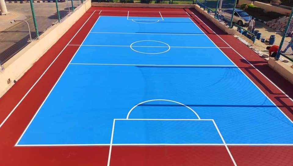 تنفيذ خطوط اللعب بألوان معتمدة دوليًا وبتقنيات دهان حراري مقاوم للتآكل.