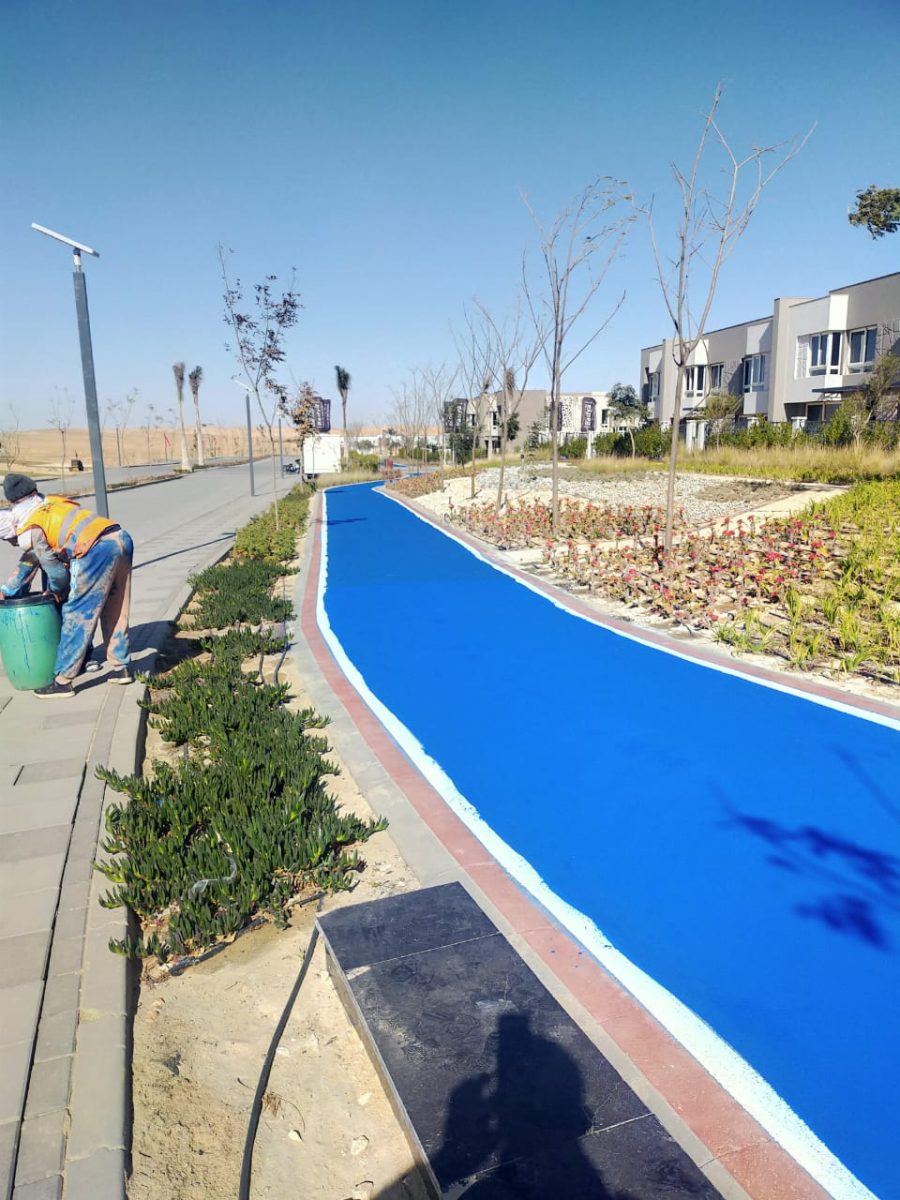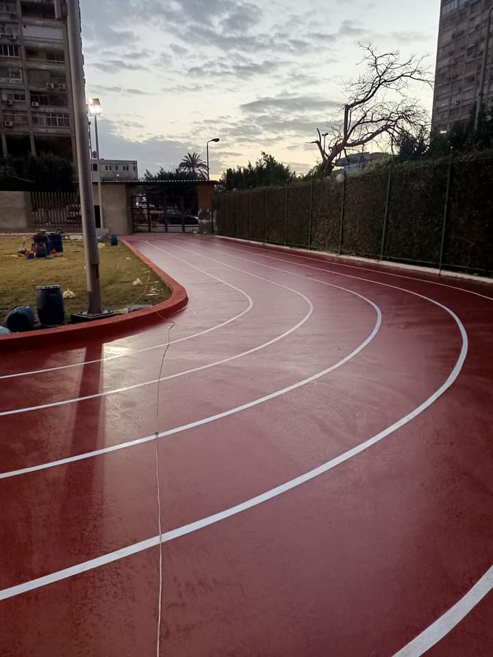 تنفيذ أرضيات الحمرا (الترابية المحسنة) أو المطاط الصناعي المقاوم للعوامل البيئية.